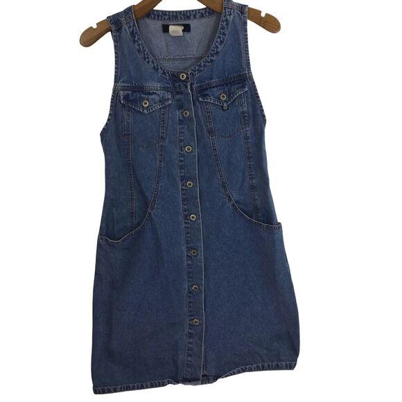 Jordache Sleeveless Button Up Pockets Round Neck Denim Dress Blue Size 13/14