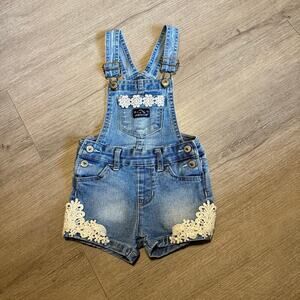 Jordache Toddler Girl 2T Denim Shortalls Lace Floral Trim Adjustable Straps