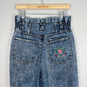 Tags: preworn, 10-1750-ZW, high waisted, hi rise, high rise, blue jeans, mom jean, mom jeans, classic, classiccore, contrast stitching, denim, rose logo, quality style craftsmanship, 1980s, 1990s, 90s, jean, pant, pants, Jordache jeans, acid wash, retro, stylish, trendy, flattering, gorgeous, details, detail, HTF, hard to find, rare, fashion, boho, bohemian, pink, red, green, yellow, tapered fit, vintage Jordache, vintage jeans, elastic waist jeans, embroidered jeans, rose embroidery, y2k, acid wash jeans, 80s jeans, heritage denim, collector denim, statement jeans, artisan detail, old school jeans, back pocket detail, made in Hong Kong, 100% cotton, relaxed fit, unique denim, rare find, vintage aesthetic, soft denim, durable cotton, rugged denim, nostalgic fashion, timeless denim, tapered leg jeans, medium wash