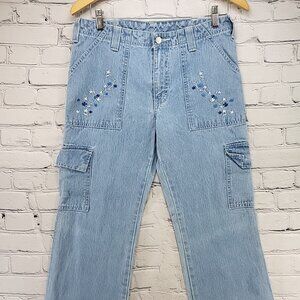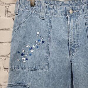 Jordache Vintage Cargo Jeans Jr Sz 7/8 Light Wash Embroidered 100% Cotton VTG