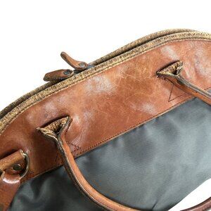 Vintage brown leather and nylon canvas satchel bag with shoulder strap