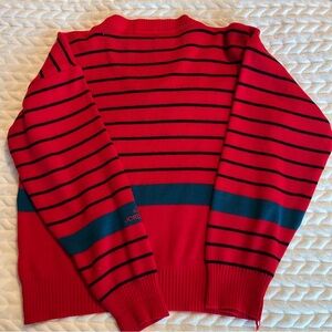 Jordache Vintage 80’ Women Size Medium, Red Black Striped Sweater, made in Taiwan, long sleeve, embroidered logo on the sleeve, excellent conditions