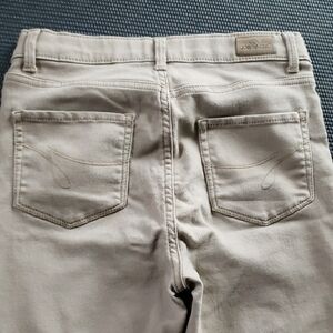 Stylish straight leg jeans by Jordache. Versatile tan color. Perfect for casual wear.