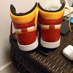 Jordan 1 red fusion(dark pink) and yellow size 8.5 like new no scratches period perfect condition offers are welcome