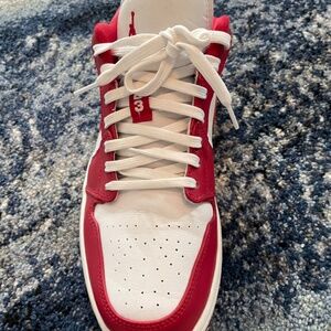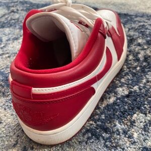 Nike red and white Jordan 1 low men’s size 10
