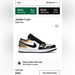 Jordan 1 Low Gold Toe Mens Size 11 GUC