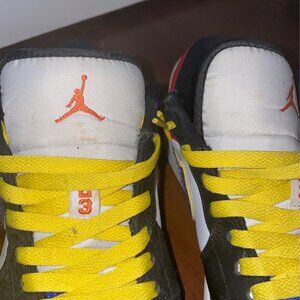 Worn a little, no flaws just a bit dusty from being in closet and some dirt on tongue