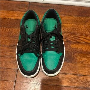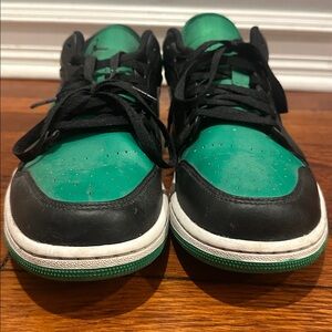 The Air Jordan 1 Low Lucky Green is constructed using Lucky Green and black color blocking across the uppers. Jordan brand stitched a black Air Jordan Wings logo on the sneakers heel, and Jumpman logo on the tongue. The low cut sneakers are laced with flat black laces.