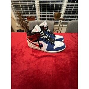 The Jordan 1 Mid Multicolored Swoosh 2019 in size 12.5 is a stylish and vibrant sneaker with a mid-top design. Featuring a colorful design with a multicolored Swoosh, this shoe is a part of the Air Jordan product line and is made with leather material. Released in 2019, this athletic shoe is perfect for men who appreciate bold and colorful footwear.