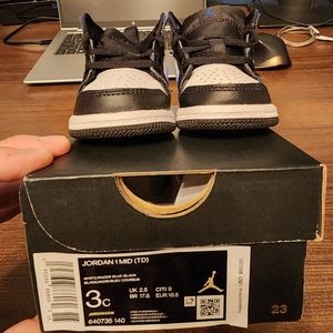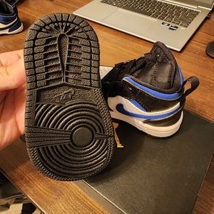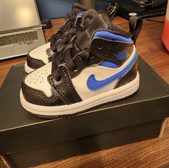 Brand New Never Worn Jordan 1 mid Racer Blue 3C toddler shoes.