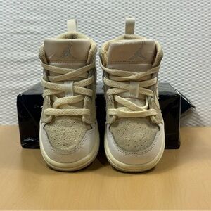 Adorable and stylish toddler Jordan 1 Mid SE Craft sneakers in size 7C.