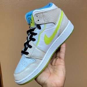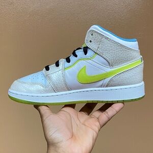 Jordan 1 Mid SE “Platinum Tint Blue Tint University Blue Volt” Size 7 Women’s