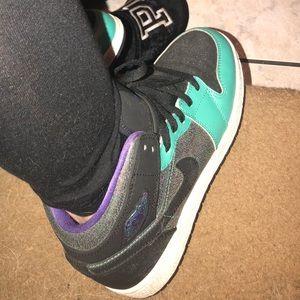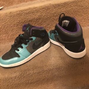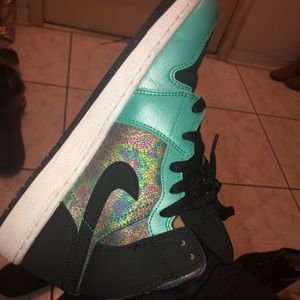 Metallic black, purple & aqua Jordan 1s. Girls size 5y can fit size 7 Women. Has holographic design. Very rare! Accepting all offers!