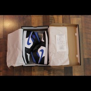 Hi, Im am selling my Jordan 1 Racer Blue/White/Black shoes. They are a size 10.5 and are in really good shape. I have the original box and original receipt to go with it. Thanks for looking!