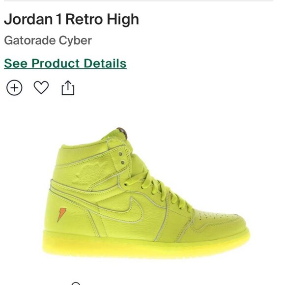 Jordan 1 Retro High Gatorade Cyber size 7