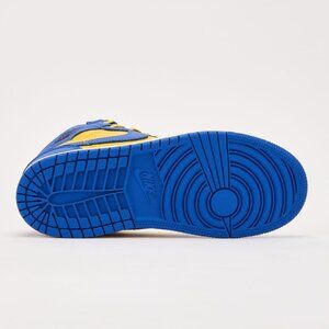 Michael Jordan pays homage to his high school alma mater with this new "Game Royal and Varsity Maize" Air Jordan 1 Retro High OG. This colorway features a premium leather construction and comes in Laney High School's team colors.