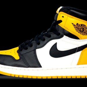 This 'Yellow Toe' colorway of the Air Jordan 1 Retro High OG also known as 'Taxi' brings back a distinct blocking first seen in the 'Bred Toe' from 2018. The all leather build combines a white base with a yellow toe box and heel/ankle area. Black leather overlays the toe and lace area, as well as appearing on the Wings logo and Swoosh. The classic AJ1 midsole/outsole combination returns, with a crisp white sidewall and yellow rubber outsole.
