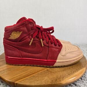 Jordan 1 Retro High Premium Dipped Toe Red Beige Sneaker Womens 8.5 AH7389-607