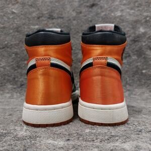 Keywords: Jordan 1, Retro High, Satin Shattered Backboard, women's sneakers, size 6.5, AV3725-010, satin Jordan, limited edition, orange black white, lifestyle, classic AJ1