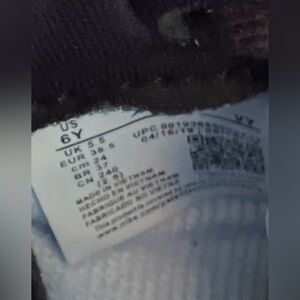 Stylish Nike sneakers for kids. Features black and light blue design. Comfortable and trendy.