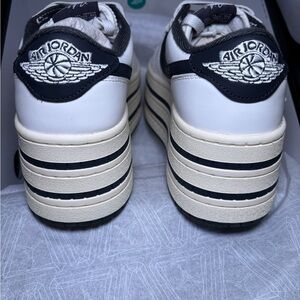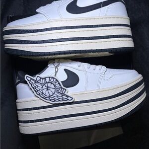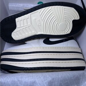 Coconut colored bottom. Black and white lining. Triple stacked for a desired height. These go so well with Jordan apparel. They will ensure your pants don’t touch the floor!