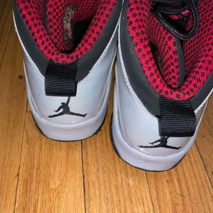 Used condition some dirt on them. Worn a few times . Red, black and silver color. 6y