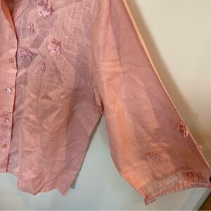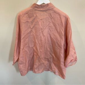Jordan 100% Linen Pink Top Button Down Floral 3/4 Sleeve Womens Large