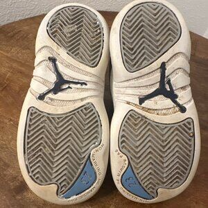Give your little one a stylish start with these Air Jordan 12 Retro Shoes in University Blue Wolf Gray. Designed for comfort and durability, these sneakers feature a premium gray leather upper with striking University Blue accents. The classic '23' on the heel and the Jumpman logo on the tongue add a touch of basketball heritage. Perfect for everyday wear or special occasions, these shoes will keep your toddler looking cool and feeling comfortable. Grab a pair today and let your child step out in style!