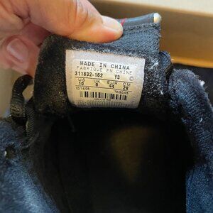 Featuring a white leather sole - the toe area is covered with black suede and the inner lining is black along with the back heel and outsole.