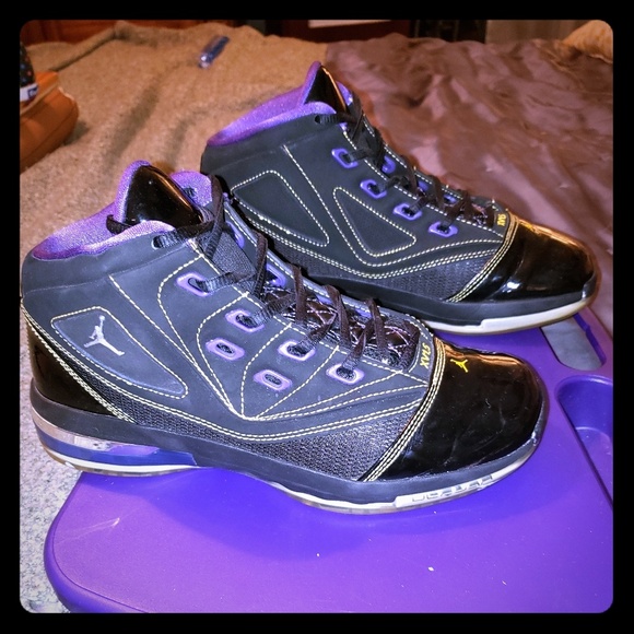 Purple and black Jordan 16.5 with braille "Jordan" on the back. In good condition with very minor signs of wear.