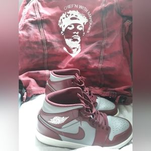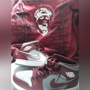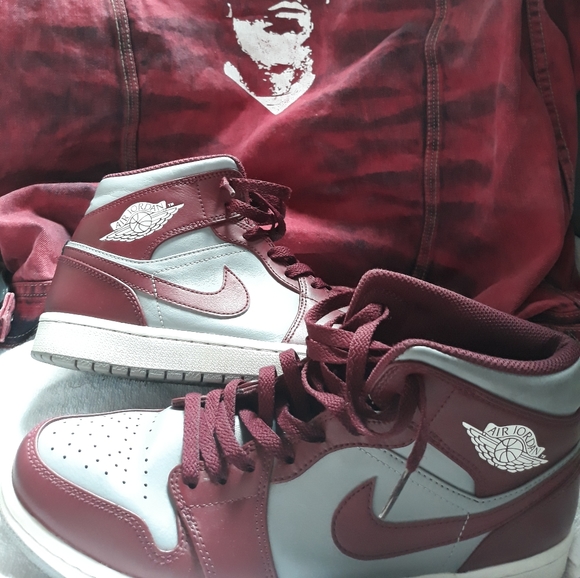 Jordan one red and grey new wore one time. nice good comfortable shoe
