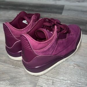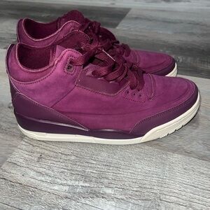 Stylish plum sneakers with a sleek design. Perfect for casual wear, Air Jordan retro 3 “Bordeaux” size 8 women in excellent condition, No Box.