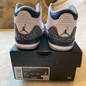 These Jordan sneakers feature a sleek white and blue colorway, crafted with a premium leather upper for durability and style. The classic basketball silhouette is enhanced with a padded collar and tongue for added comfort. Perfect for both casual and athletic wear, these sneakers offer a timeless look with modern performance.