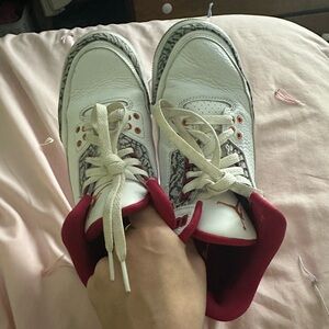 100% authentic from snkrs (can provide receipt) air Jordan 3 cardinal red Jordan sneakers. Size 7Y/7 mens/8.5 womens. Lightly used, minor creasing, no flaws on leather just some wear on the sole/star loss. Message me with any questions #jordan3 #airjordan #dunklow #cardinalredjordan #iso