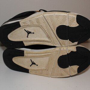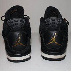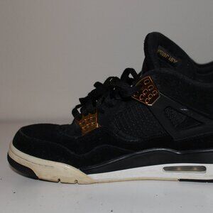 The Air Jordan 4 Retro Royalty has a combination of metallic gold accents on top of a monochrome black suede upper.