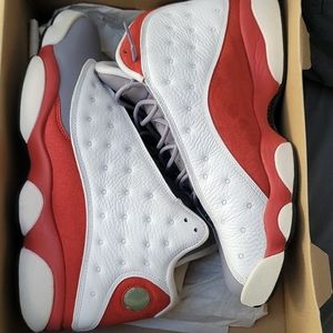 Gray and white Jordans