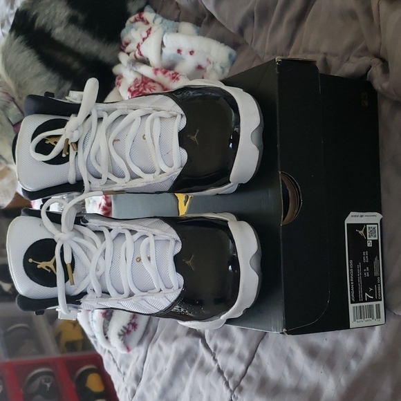 White/Metallic Gold-Black-Ice Jordan 6 rings basketball sneakers. Used 2 times