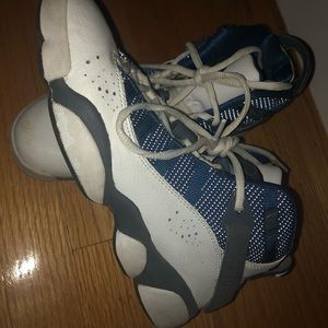 Jordan 6 Rings (GS) white- french blue - flint grey. Fairly worn. Faint scuff on right show (close up pictured)