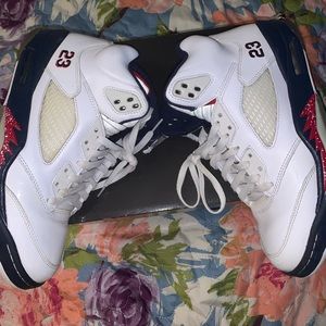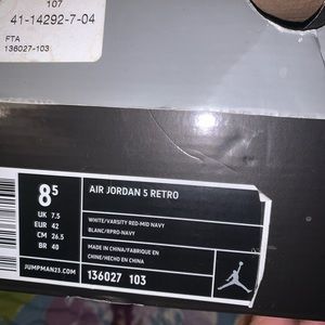 In good used condition don’t fit son no more this retro 5 Jordan’s size 8.5 in men box it beat up as you seen in the pictures