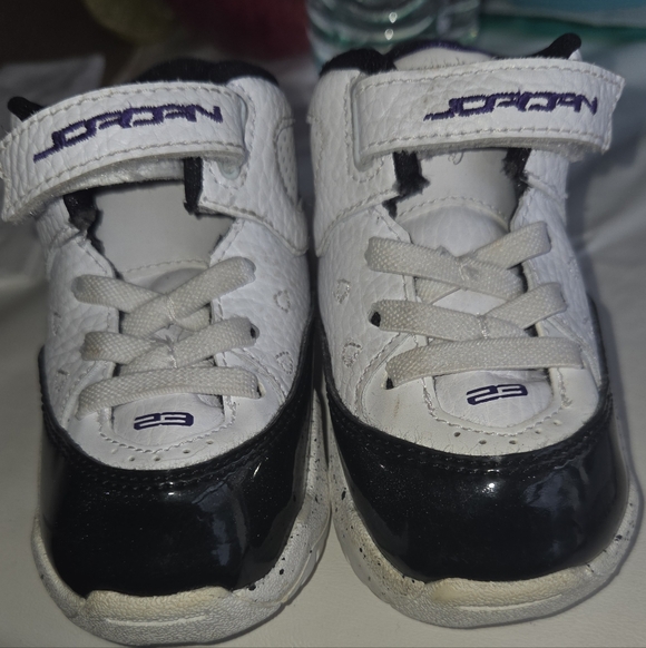 TODDLERS AIR JORDAN B'LOYAL TD BLACK AND WHITE AND COURT PURPLE SIZE 5C