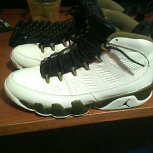 Sz.8 jordan 9 olive good condition .. Flaws are( inside was cut by 3yr old son) it is in the pic .. Please dont ask for 1million pics if you dnt plan on buying