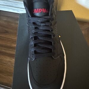 High-top design. Black leather upper. Red accents. Iconic Jordan logo. They are the Access. NWOT has box