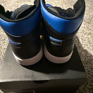 Sleek Air Jordan 1 Mid in black and royal blue. Iconic style for any occasion.