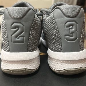 Jordan B.Fly BG, COOL GREY/ WHITE- WOLF GREY. SIZE 6 Youth, Size 7.5 Women’s. Immaculate condition, no stains, snags, tears or holes. Insoles are in good shape and bottom sole has nearly 100% tread left. Rare color way! Anything Jordan in Wolf Grey always sells out fast!