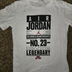 Fun facts meet cool style in this Jordan Legendary-Print Tee. Made from a soft cotton-blend jersey, it’s perfect for everyday wear and play. The bold graphic print on the front and left sleeve adds standout style any young athlete will love.