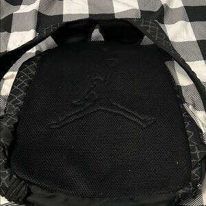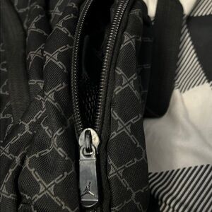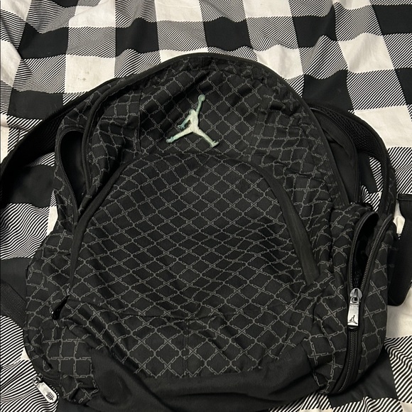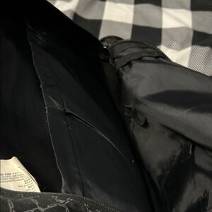 Stylish black backpack with a unique pattern, perfect for everyday use.