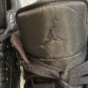 Sleek black Jordan sneakers. Iconic design. Comfortable fit.