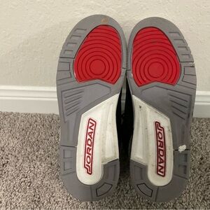 These Jordan sneakers feature a sleek black and gray color scheme, highlighted by a distinctive elephant print on the upper. The low-top silhouette and classic design make them a versatile choice for any casual occasion.
