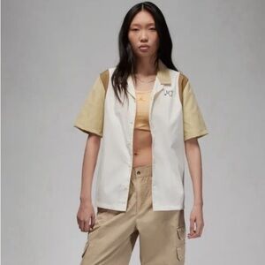 Nike Air Jordan Colorblock Camp Boxy Button Down Shirt Women’s XS Brown Kelp/Sail