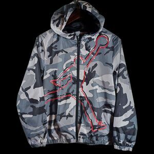 Jordan Boys L 12-13yrs Camo Windbreaker Zip Hoodie Jacket Gray Red Jumpman Logo